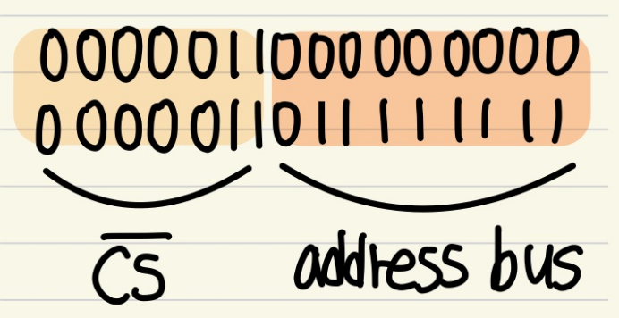 -> 왼쪽에서부터 두 숫자가 겹치는 지점까지가 CS, 숫자가 달라지는 지점부터가 address bus에 해당된다.
