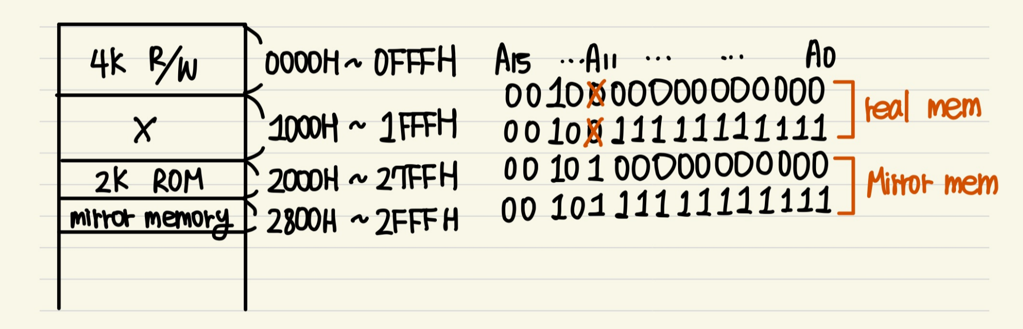 -> 2kB는 4kB/2이므로, A11까지 address bus에 담지 말고, A10까지만 address bus에 담자.