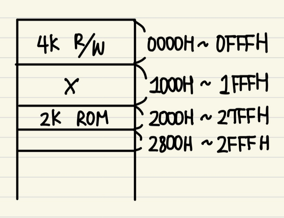 1) 0000H ~ 4kB 짜리 R/W 메모리를 설계하자.