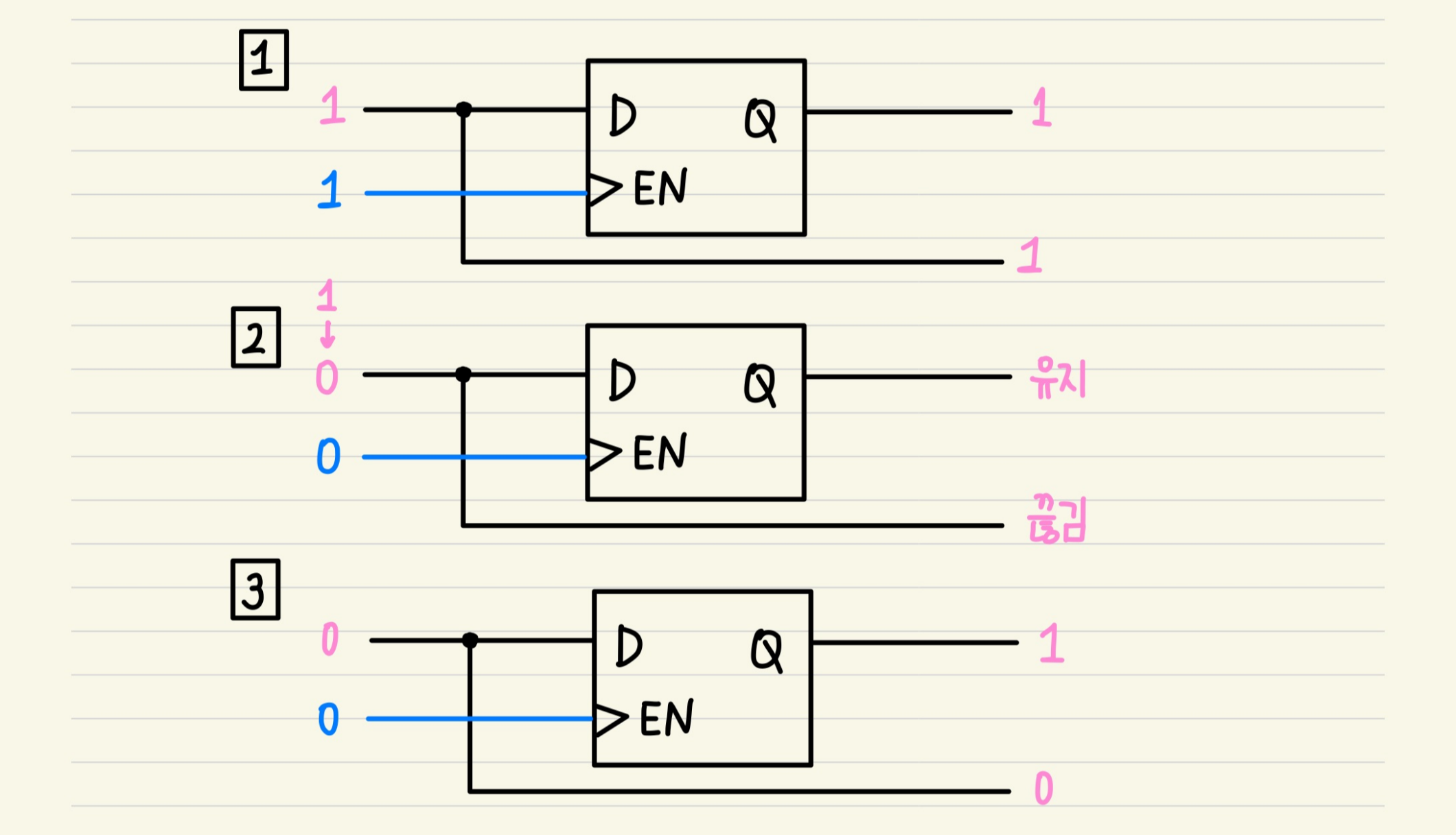 (2) 잠시 뒤, Ctrl 신호(파랑)을 0으로 바꾼다.