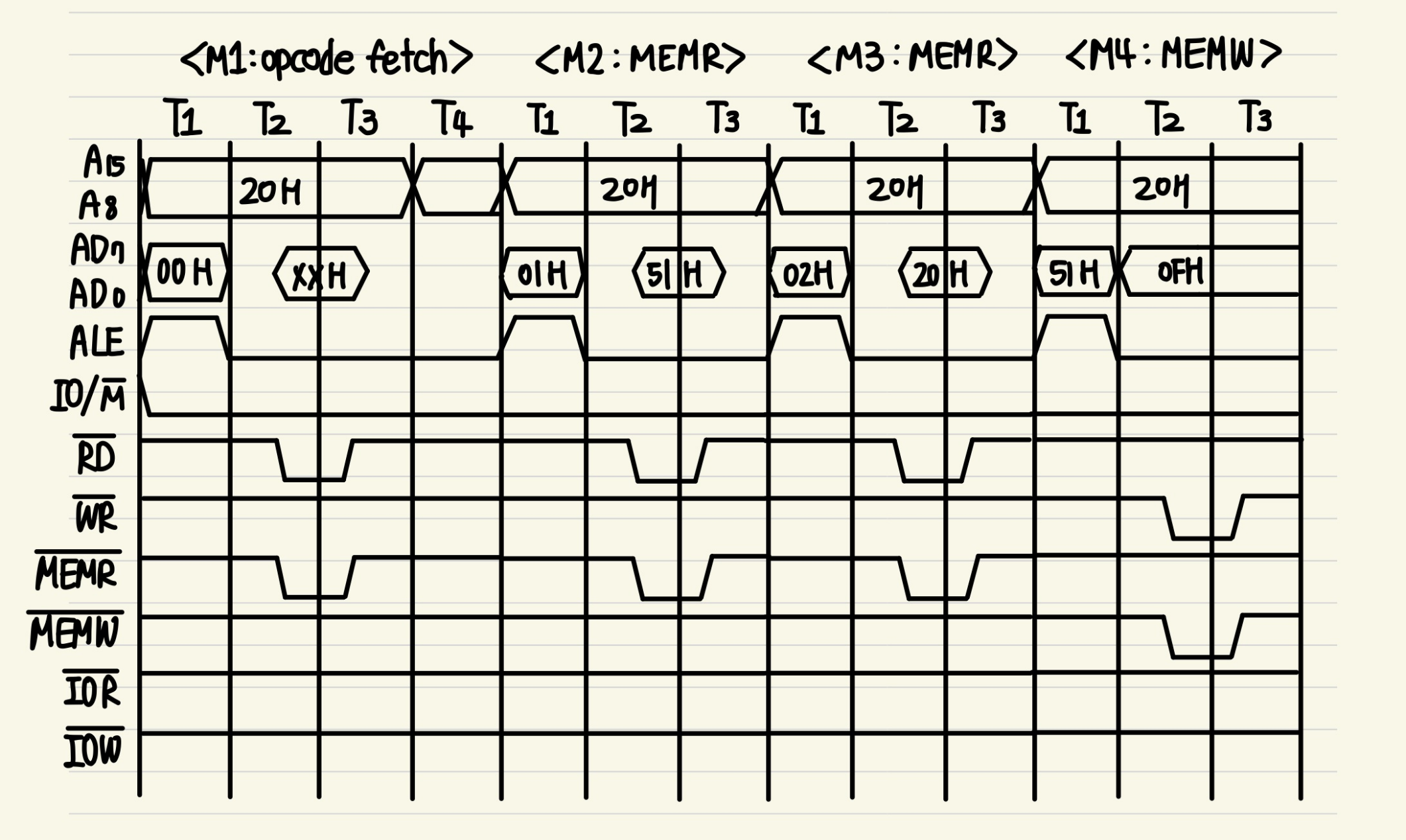 * 모든 명령어의 시작은 opcode fetch machine cycle이다.