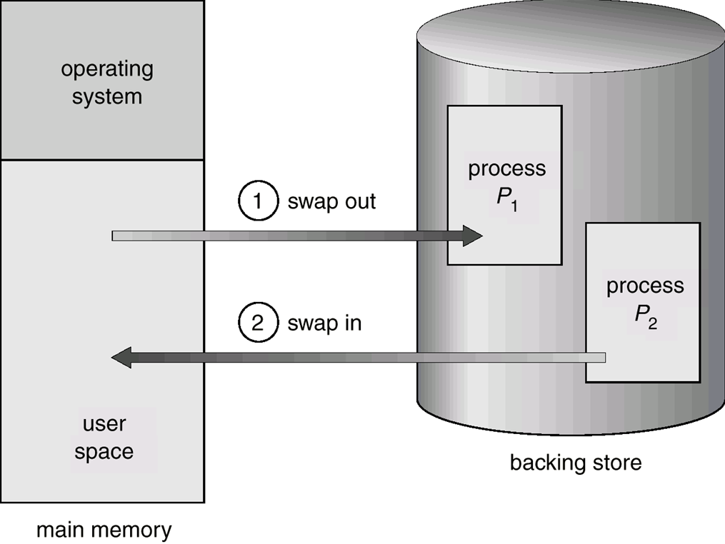 프로세스를 [메모리 부족 상태]에서 [백업 저장소]로 일시적으로 swap한 다음,