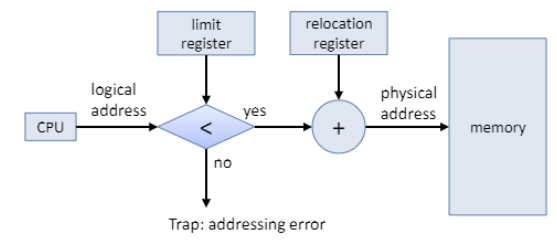 (1) limit register : 상한 레지스터의 제한 값보다 큰 가상 주소에 memory protection fault(trap)을 발생시킨다.