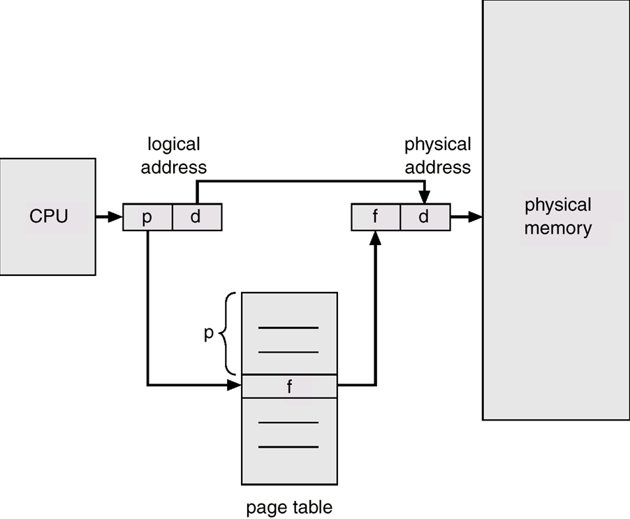 -> Page offset(d) : 기본 주소와 결합되어 메모리 장치로 전송되는 physical 메모리 주소.