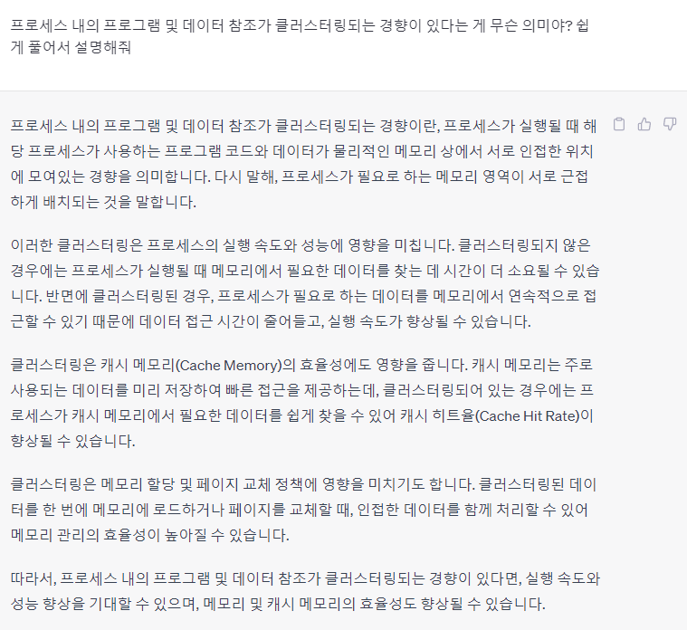 (1) 프로세스 내의 프로그램 및 데이터 참조(data reference)가 클러스터링되는 경향이 있음을 의미한다.