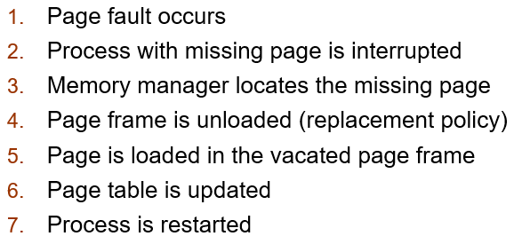 Virtual memory는 Demand paging, Demand segmentation을 통해 구현할 수 있다.