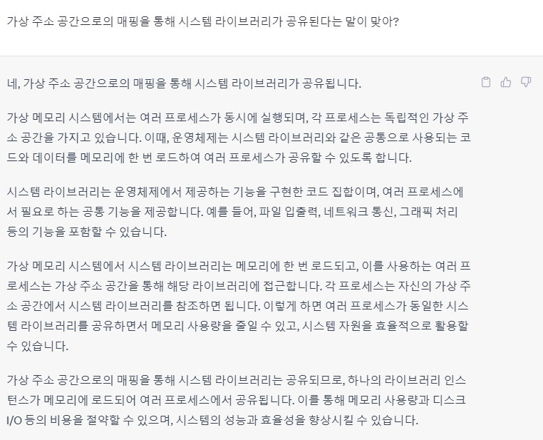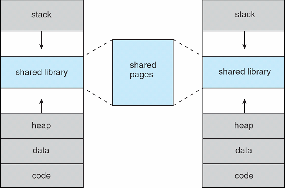 가상 주소 공간으로의 매핑을 통해 시스템 라이브러리가 공유된다.