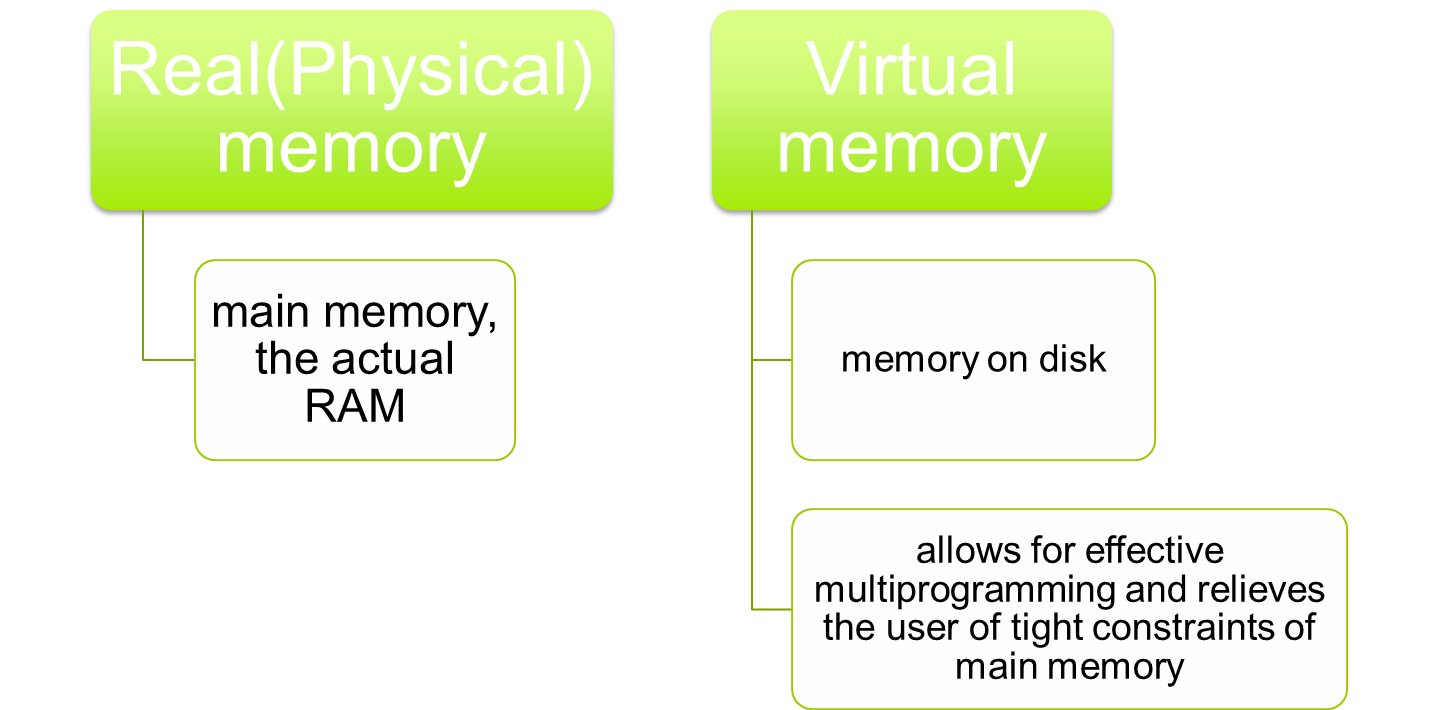 -> 프로세스가 오직 메인 메모리에서만 실행되기 때문에, 해당 메모리를 real memory라고 부른다.