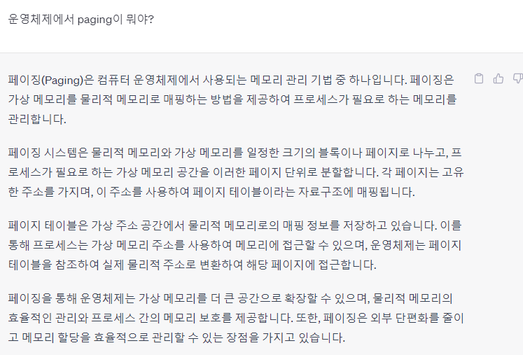 (2) Paiging : virtual memory와 physical memory의 size를 같게 해서 효율적으로 관리하는 기법.