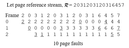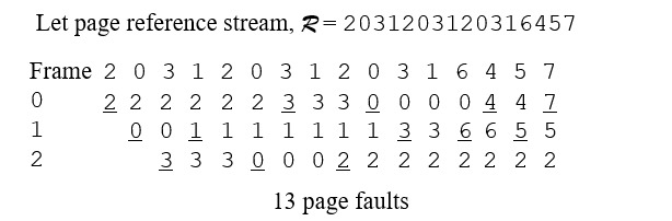 (1) R = r1, r2, r3, ...를 page reference stream(페이지 참조 스트림)이라고 하자.