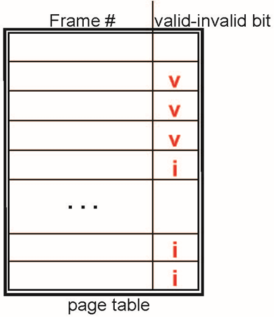 -> 페이지 테이블을 사용하여 가상 주소를 물리 주소로 변환하는 과정에서 Valid-Invalid bit를 확인하여
