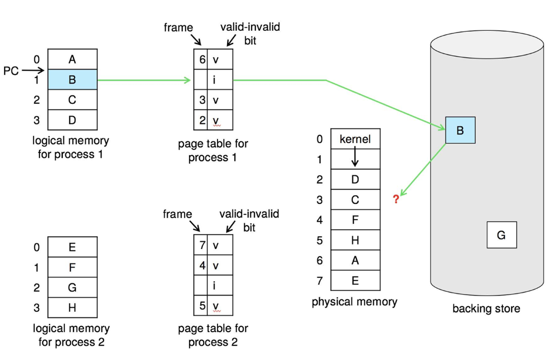 (2) 페이지 폴트 감지 : Page fault가 발생하면 해당 페이지의 bit가 무효한 상태인지 확인된다.