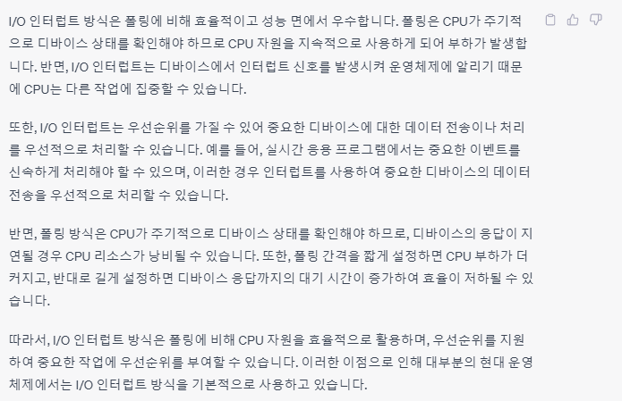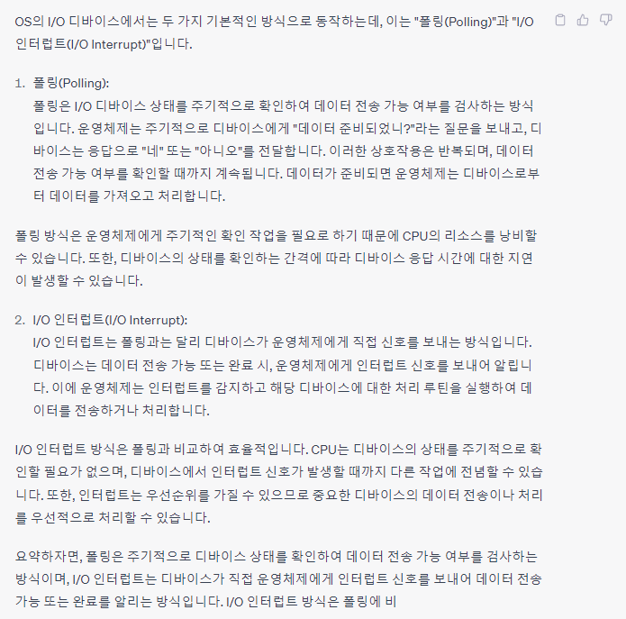 (4) 실제 I/O device는 폴링과 인터럽트를 모두 결합한다.