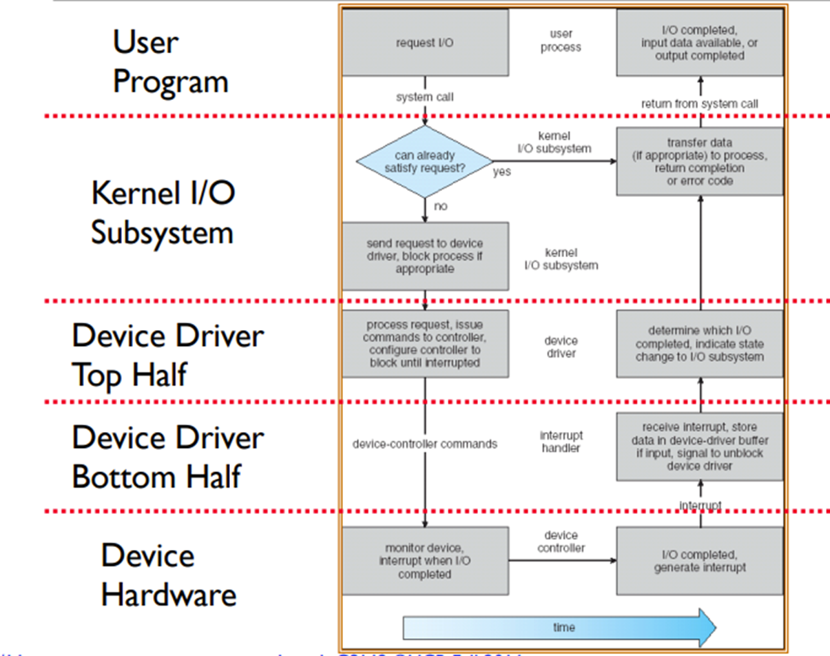-> bottom half(하위 부분)은 실제 I/O 작업을 수행하는 역할을 한다.