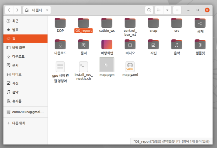 -> 로컬 저장소에 'OS_report'라는, 생성한 레퍼지토리가 복제된 것을 확인할 수 있다.