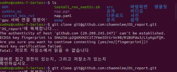 -> '~/.ssh'에서 벗어난 다음, 생성한 레퍼지토리를 복제한다.