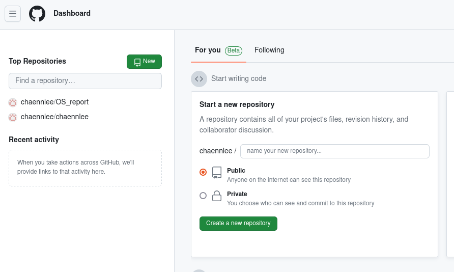 -> 먼저 new repository를 생성한다. Public으로 생성해야 모두에게 공개된다.