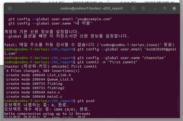 4. 깃허브 업로드 - 리눅스 터미널 창에서