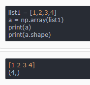 (4) 참고 사항 : np.array 함수란? list에서 ','와 같은 구분 기호를 없애준다.