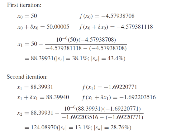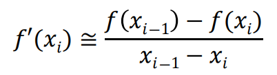 Newton-Raphson 방법을 구현할 때의 문제점은 도함수가 어렵거나 계산하기 어려운 특정 함수가 있다는 점이다. 이러한 경우, Secant Method를 사용하여 backward finite divided difference에 의해 도함수를 근사화할 수 있다.