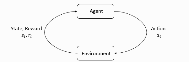 강화학습 문제는 가치함수와 기대 보상으로 이루어진 MDP(Markov Decision Process)로 모델링할 수 있다. MDP란 4개 요소로 구성된 튜플(S, A, P, R)이다. S는 상태 집합으로 구성된 유한 개의 상태 공간이다. A는 행동 집합으로 구성된 유한 개의 행동 공간이다. P는 전이 함수 transition function으로서 행동 A를 통해 상태 S에서 상태 S'로 변환될 확률을 의미한다. P(S', S, A) = P(S' | S, A)에서 전이함수는 S와 A가 주어졌을 때 S'가 발생할 조건부 확률이다. R은 보상함수로서 상태 S에서 행동 A를 수행한 후 상태 S'로 변환되는 과정에서 얻는 가치를 결정한다.