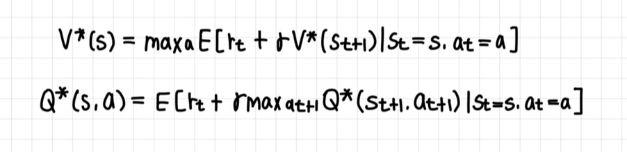 완벽한 환경 모델을 받아 최적의 폴리시를 산출한다. 다음 상태의 기대가치를 사용해 현재 상태의 가치를 추정 및 개선한다. DP는 벨만 방정식을 이용해 V*와 Q*를 추정한다.