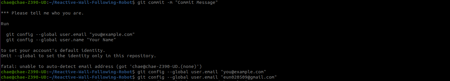 (1) git commit을 처음 할 때 'Please tell me who you are'이라는 오류가 뜰 수 있다. 이런 경우, 터미널 창에 입력된 대로 깃허브 이메일과 이름을 작성해주면 된다.