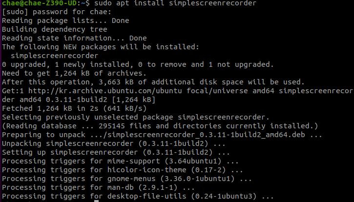리눅스에서 learning을 돌린 후 결과를 저장할 때 화면 녹화하기 좋은 application이다. 간단히 아래 코드를 입력하면 설치된다.