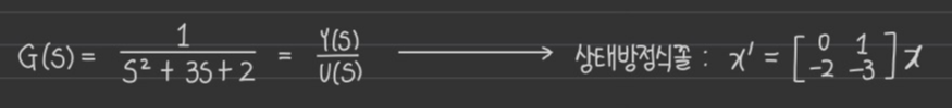 다음 전달함수의 상태 방정식꼴은 아래와 같다.