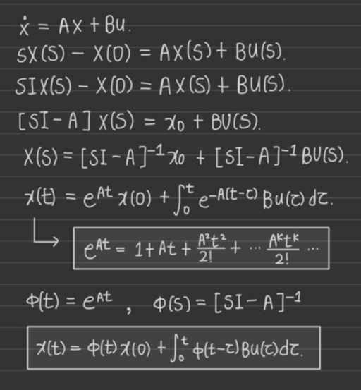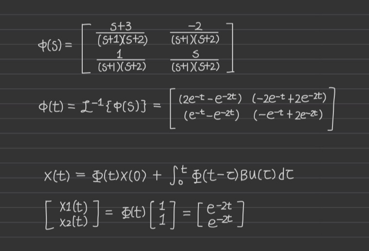 즉 transition matrix를 가지고 vector 연산을 시행하면 해를 찾을 수 있다. (=상태 방정식의 해의 의미)