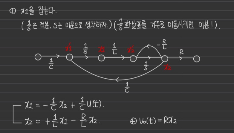 ** 일반적으로 상태는 [적분](1/s)으로 표현해야지 전달함수 또는 s의 미분으로 표현하기 쉽다.