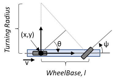 일반화된 형식에서 헤딩 속도 ω는 [관계 ω = v/l*tanψ] 인 조향 각도 ψ와 관련된다.