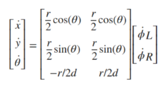 일반화된 형식에서 입력은 [속도 v = r/2*(˙ϕR+˙ϕL)]와 [차량 방향 각속도 ω = r/2d*(˙ϕR−˙ϕL)]로 주어진다.