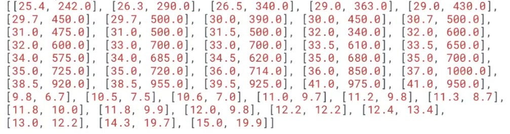 리스트 안에 for문이 들어 있는 형태다. length, weight를 파이썬의 zip 함수로 묶은 후 각각의 리스트에서 element를 하나씩 꺼내 l, w에 할당한다. l, w로 된 작은 리스트들을 만들어서 큰 리스트에 추가한다.
