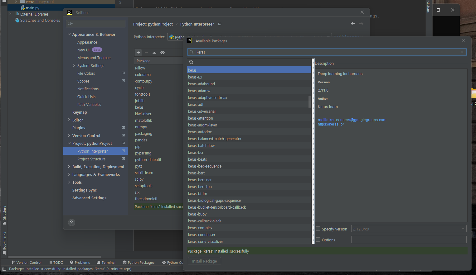 -> pip, setuptools, numpy, pandas, matplotlib, sklearn, tqdm, keras, tensorflow 설치