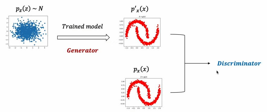 -> [파란색 분포]를 [빨간색 분포]로부터 다이렉트하게 변환할 수는 없다. 따라서 학습이 필요하다.
